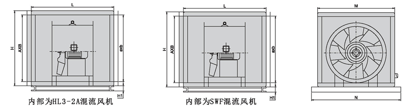 風(fēng)機(jī)選用HL3- 2A或SWF系列風(fēng)機(jī),性能參數(shù)依照HL3-2A或SWF系列風(fēng)機(jī)中同型號(hào)的性能參數(shù)。